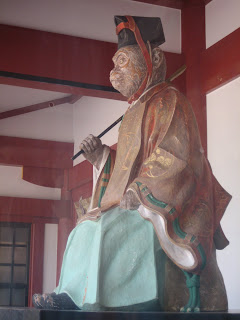 there are several Hie shrines located in Japan - they are dedicated to Mt Hiei and the monkey is its protector animal... the tall monkey statues are considered Montain Kings and the smaller statues are called Sarugami and are messengers of the Mountain Kings... these are the origin of the "hear no evil, see no evil, speak no evil" monkeys...